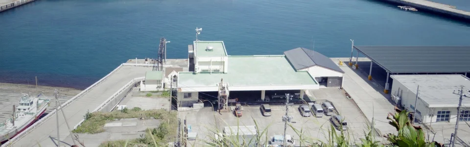 島の北部にある港。島の中心地「本村」へは車や連絡バスでトンネルを通らないと行けません。(トンネルは、徒歩や自転車の通行不可)